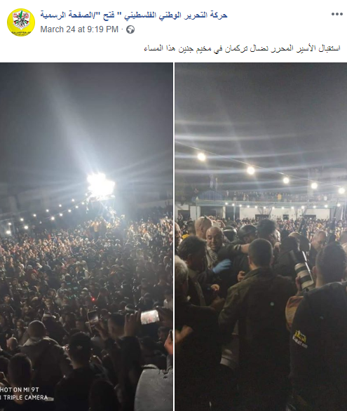 Thousands of Palestinians celebrated a terrorist’s release from prison, ignoring PA instructions to self-quarantine.