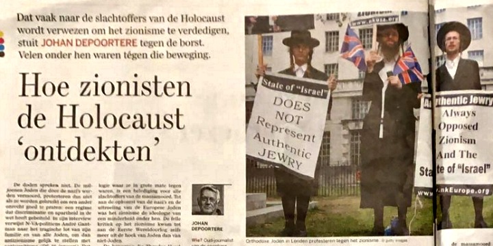 The offending article — in the mass-circulation Flemish-language daily de Standaard — . Titled “How the Zionists ‘Discovered’ the Holocaust”